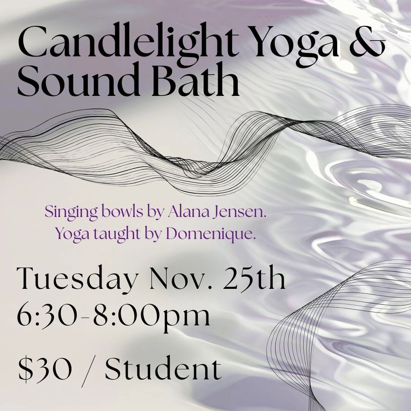 90-minutes of pure relaxation. Yoga class taught by Domenique, with singing bowls played by Alana Jensen. Students can expect lots of restorative poses, with a focus on gentle stretching & releasing tension through breath. We'll move slowly from one shape to another, and learn to settle into the stillness in between. Students will be offered hands-on assists and warm towels to end class in a long Savasana.